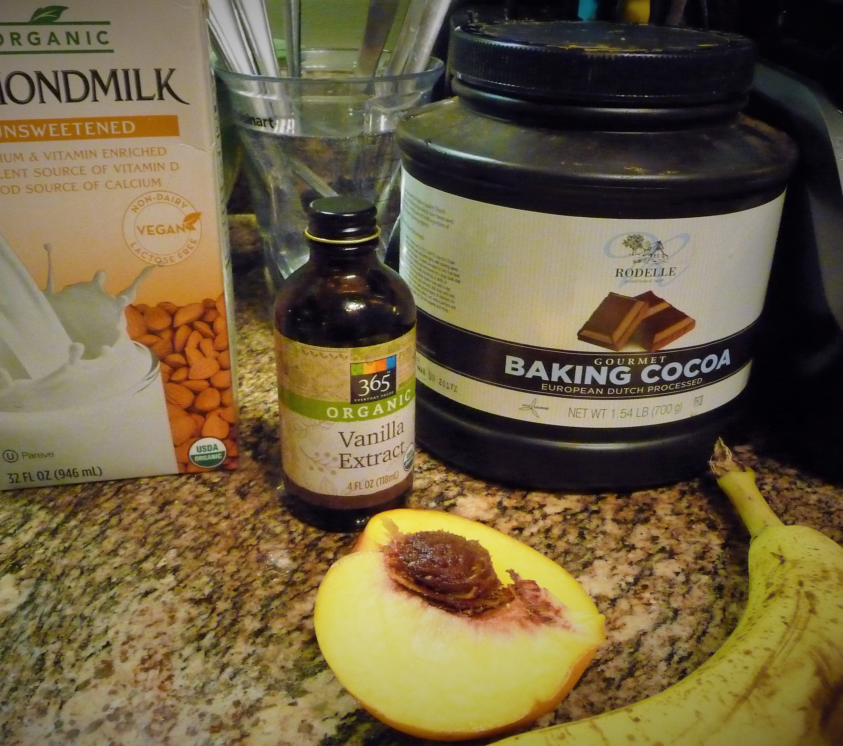 After 1 minute, transfer the banana and almond milk to a blender or food processor. Add the cocoa powder and vanilla. Puree until smooth.