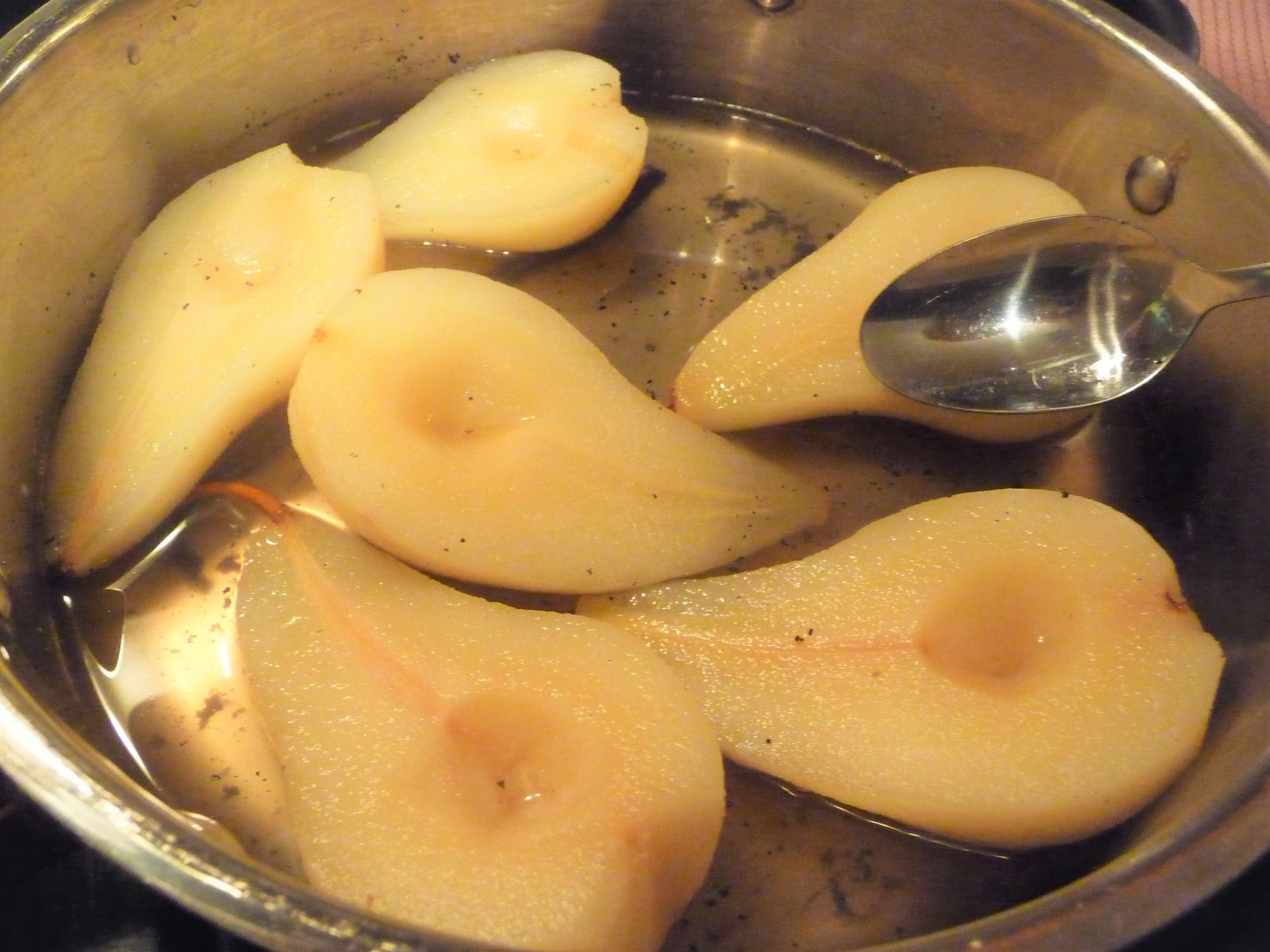 Cook until the pears are tender — a knife can easily be inserted and pear falls off.