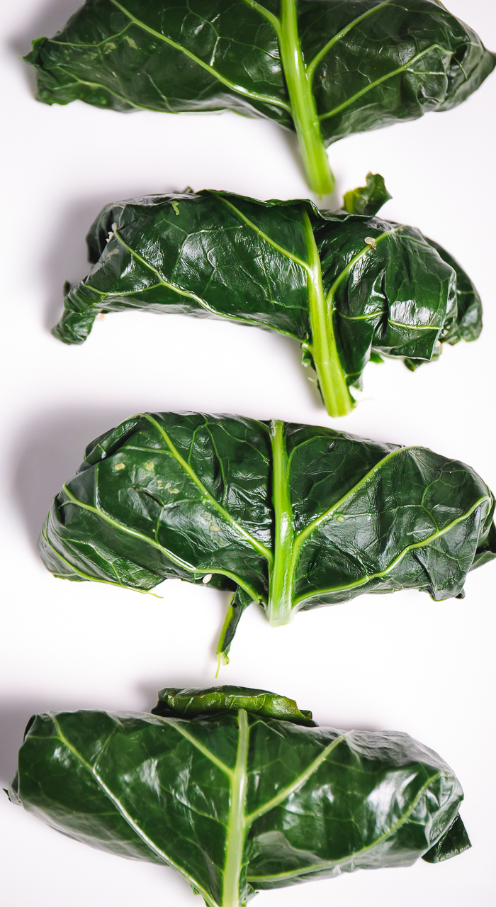 Growing up in the South, collard leaves always reminded me of giant elephant ears. Braised and stewed, the greens would get melt-in-your-mouth tender and deliciously sweet. I wasn’t too concerned about how healthy they were. Rather, I loved how they looked on a big plate next to some grilled corn, baked beans, and barbecue.