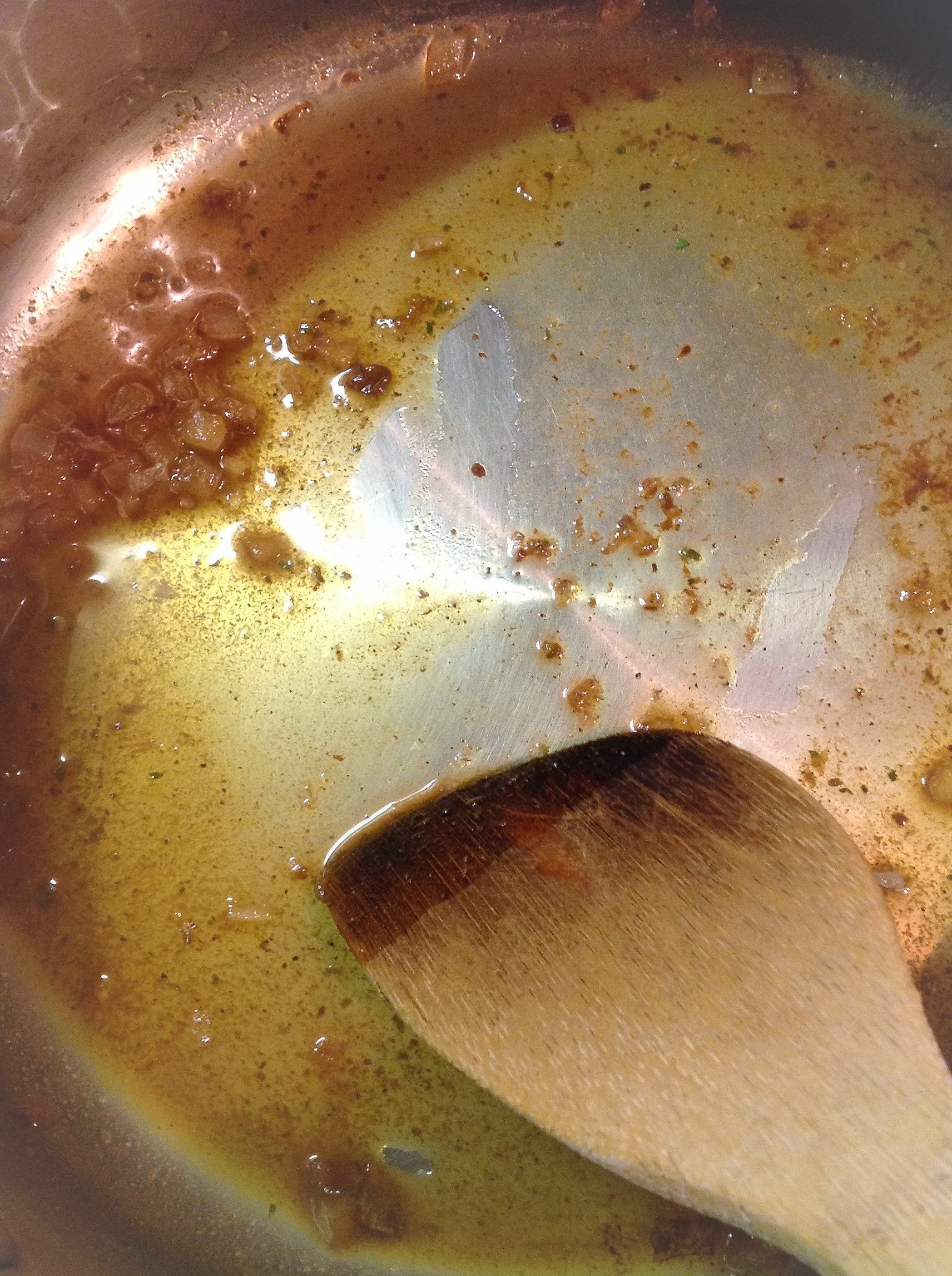 When the onion starts to brown around the edges and stick to the bottom of the pan, add the black beans. Cover and cook another 3-5 minutes, until the beans are completely soft.