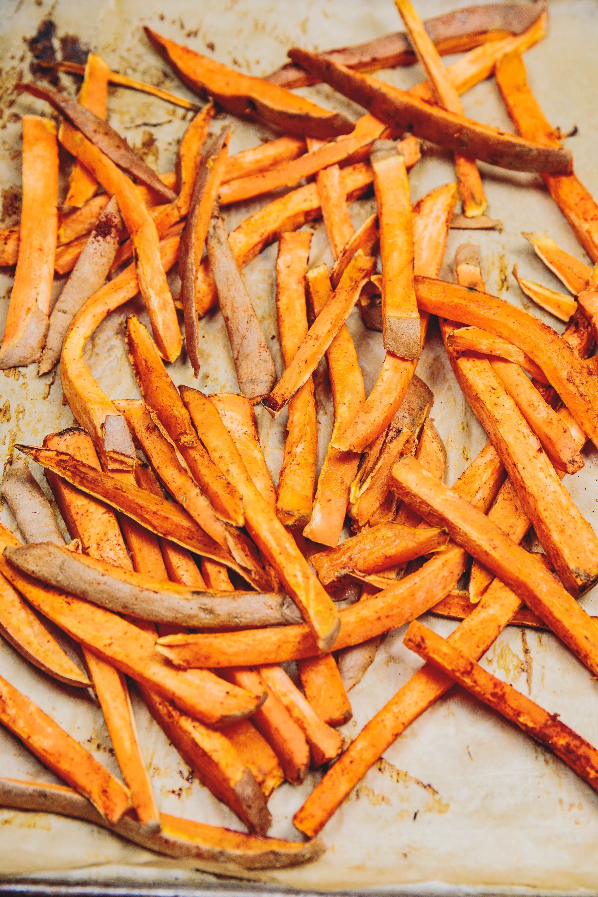Single Layer Only: Be sure not to overcrowd your baking sheet, laying the fries into just a single layer. Use two sheet pans if needed.