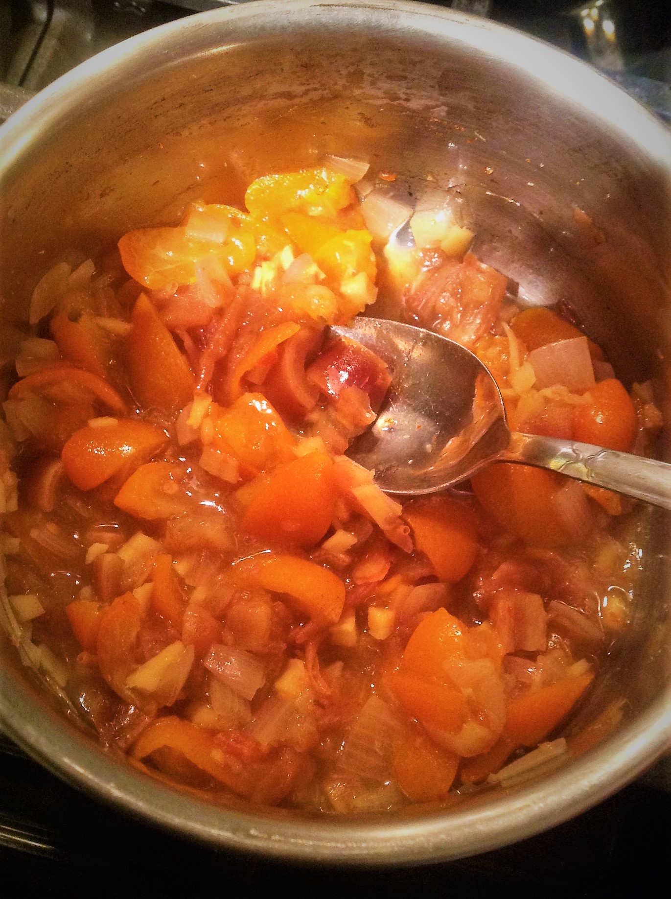 Cook until the kumquats break down and everything is thick and chunky. Remove from heat and let cool.