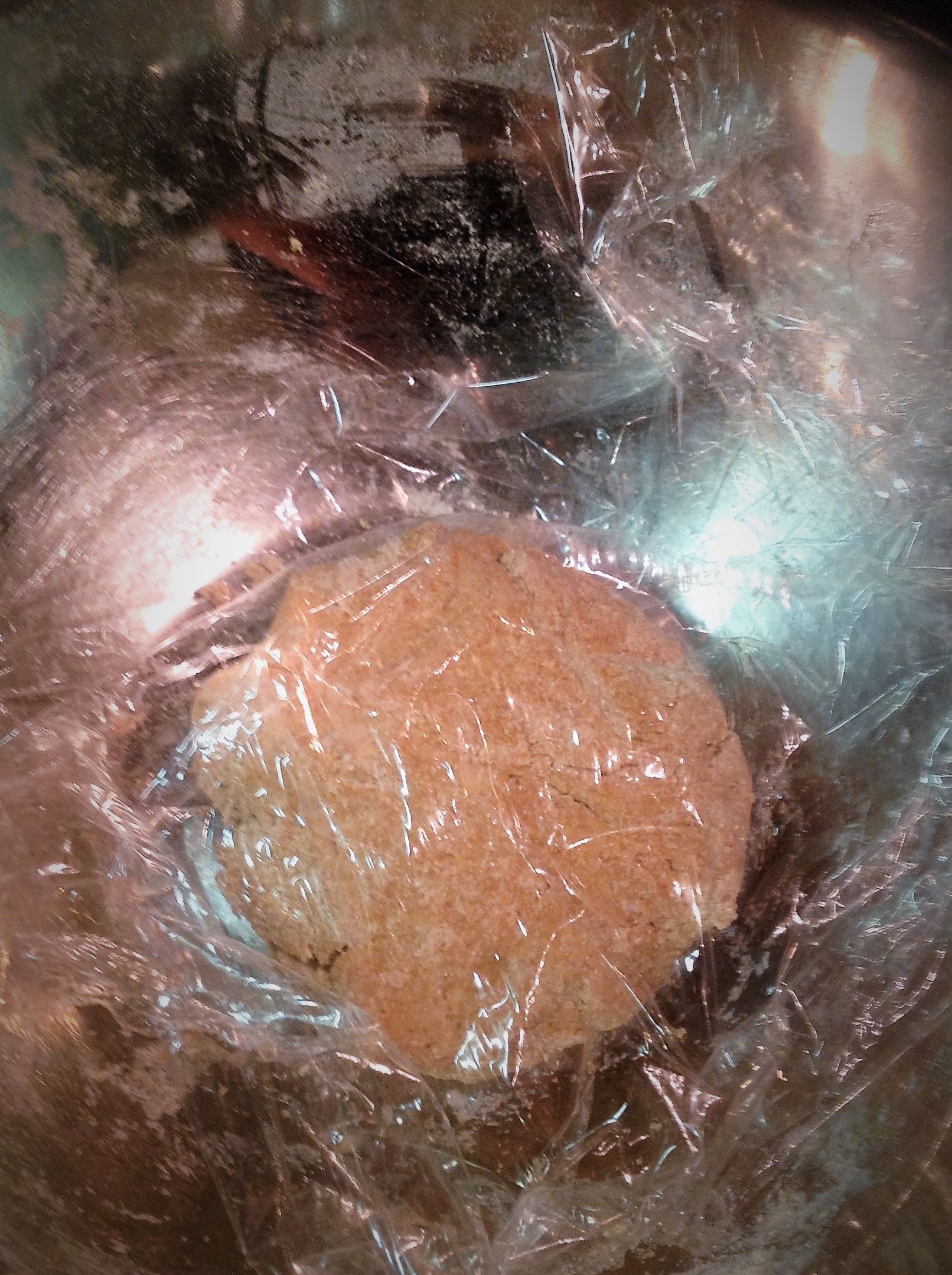Cover dough with plastic and let sit 15 minutes, to allow gluten proteins to soften.