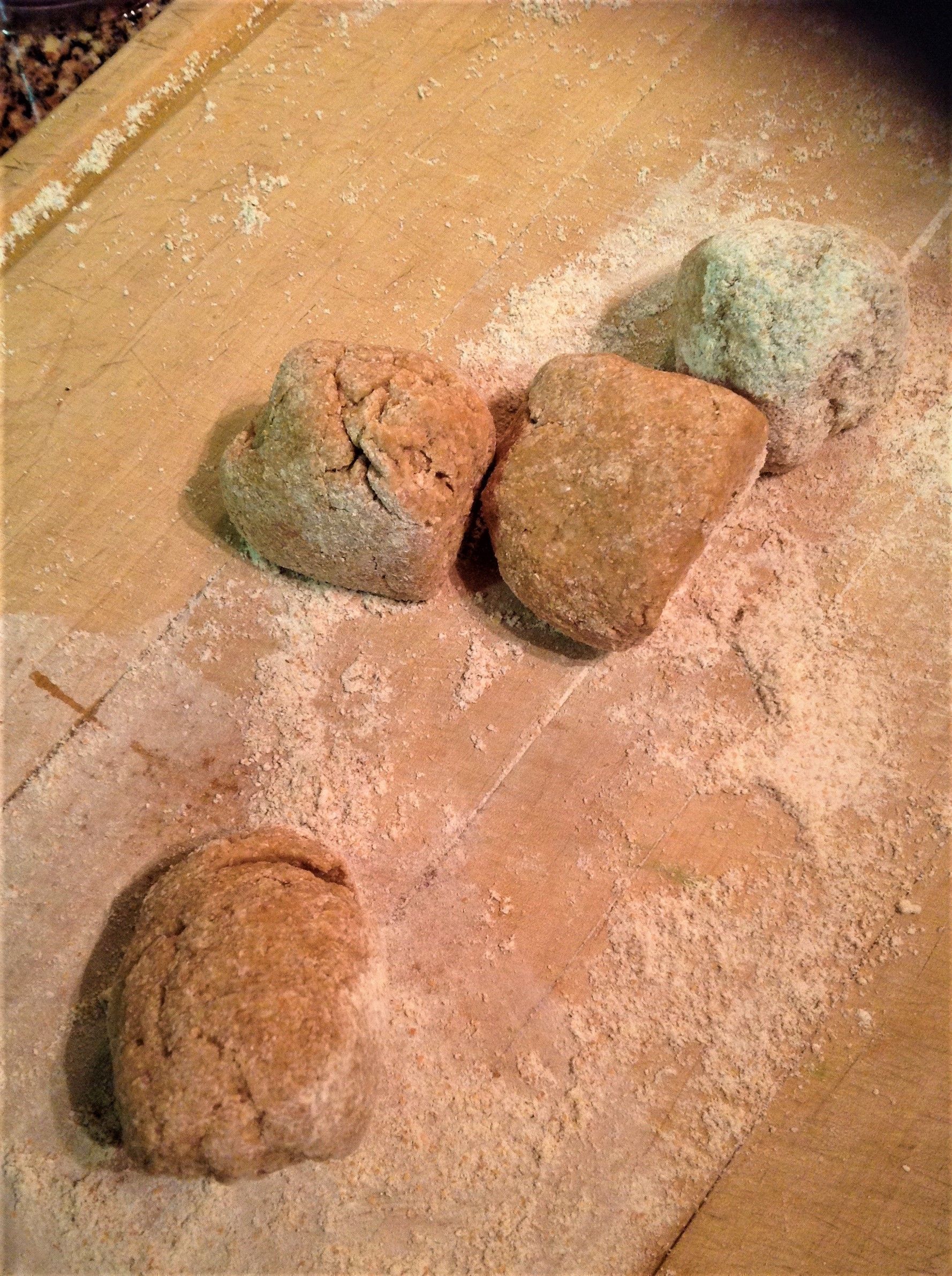 To make the Dough: Sift together the flour, salt, and spices into a mixing bowl. Add the 3/4 cup of water. Use a fork or whisk to start mixing. Use your hands to continue combining the water and flour. Once the two are incorporated, knead another minute or so.