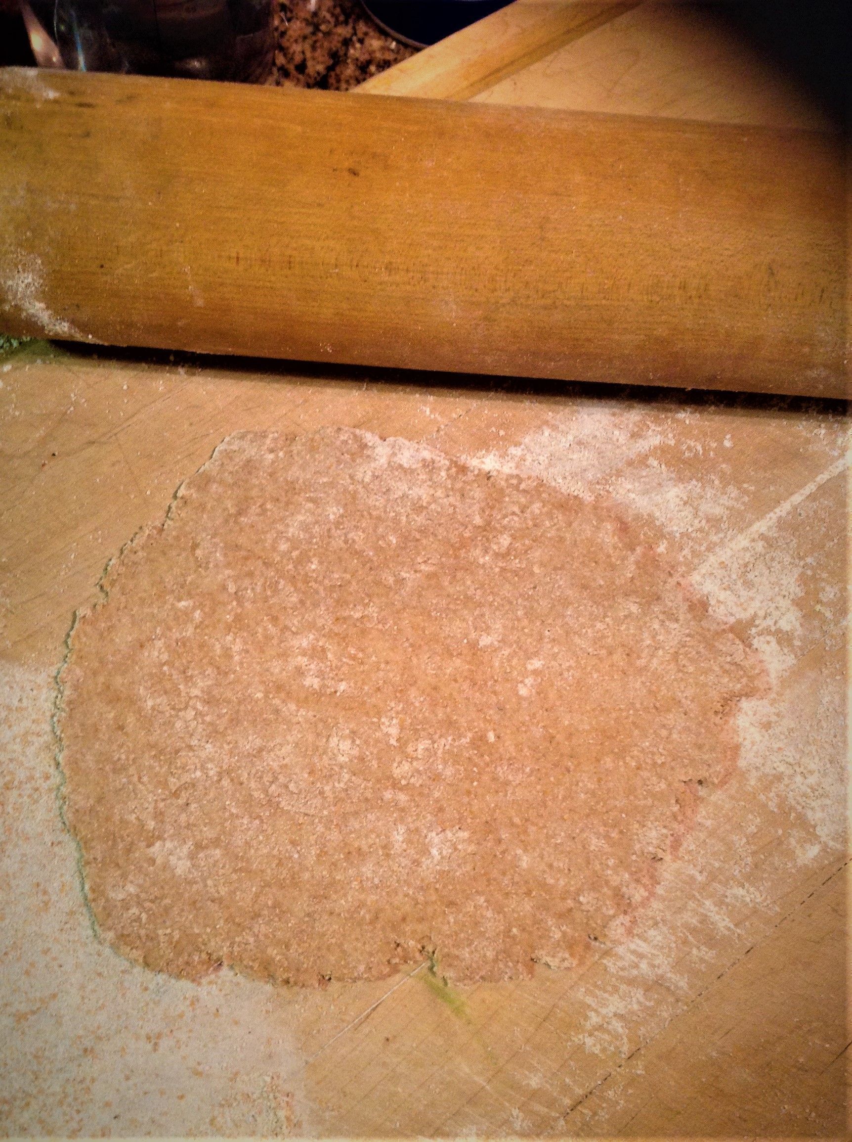 On a well-floured surface, use a rolling pin to roll a ball of dough into a very thin circle. The thinner, the better, but you don’t want any holes in the dough. Do this for 2 balls.