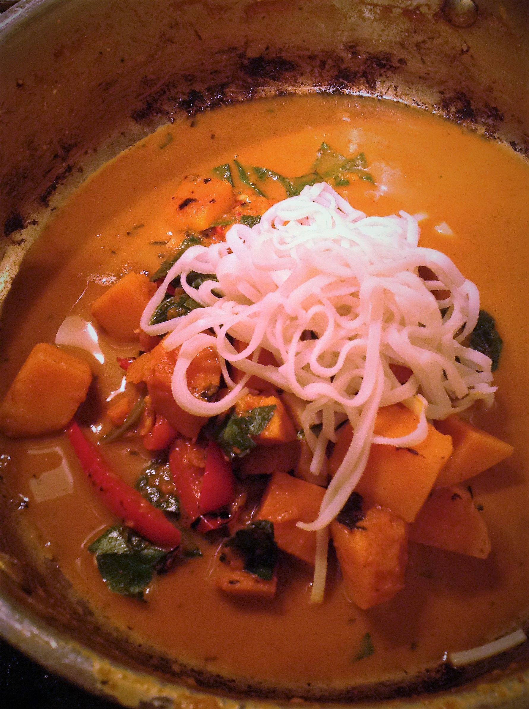 To cook the Brown Rice Pad Thai Noodles: While the curry simmers, cook noodles in boiling water, according to package instructions. Drain and keep warm until the curry is ready.