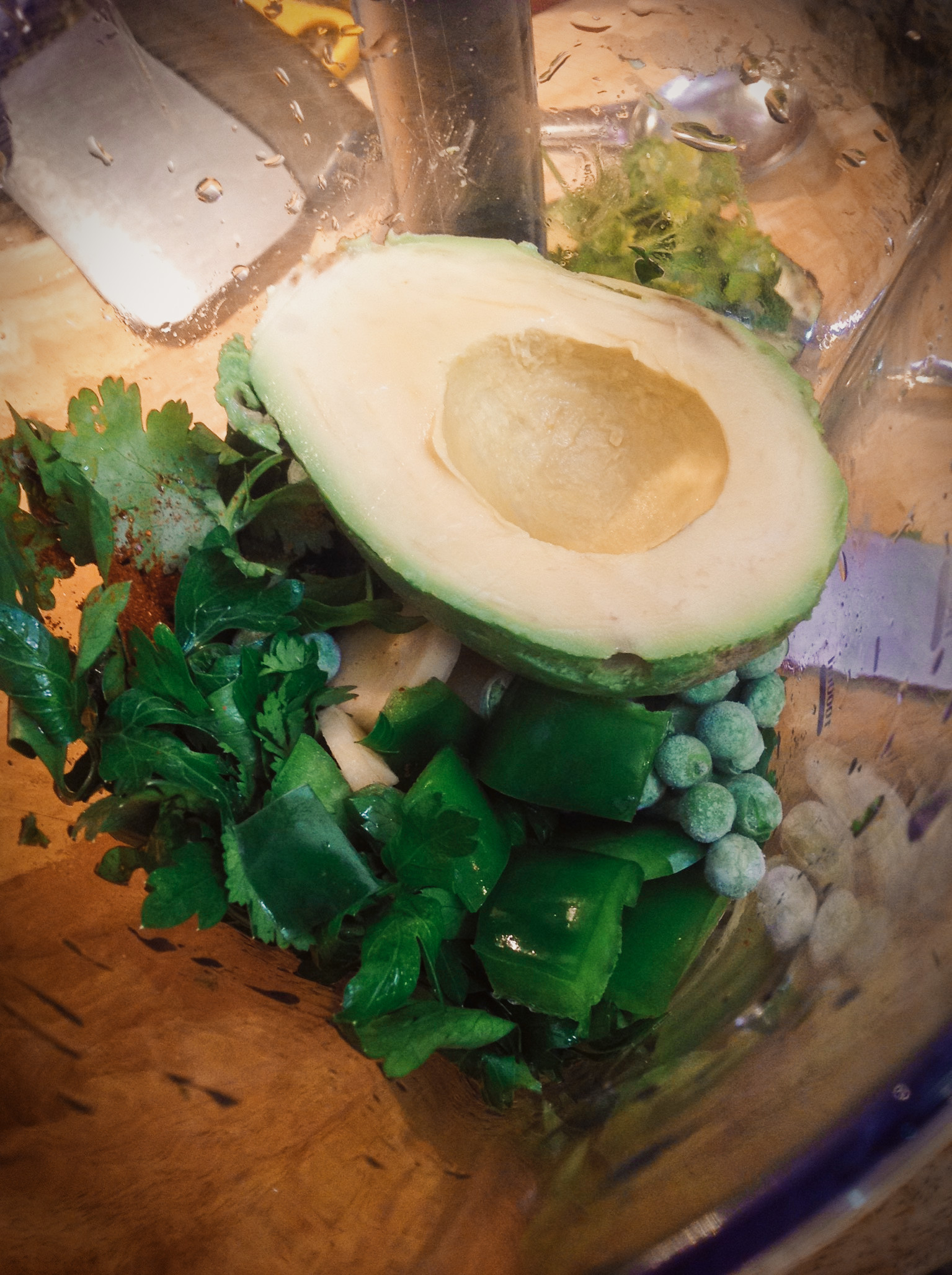 Traditionally, oil is used as the fatty emulsifier to bring all of the flavors together. For my recipe, though, I’m on a mission to cook without oil. I use avocado and green peas to add creamy, rich flavor. These also help create a thicker sauce and add bright green color.