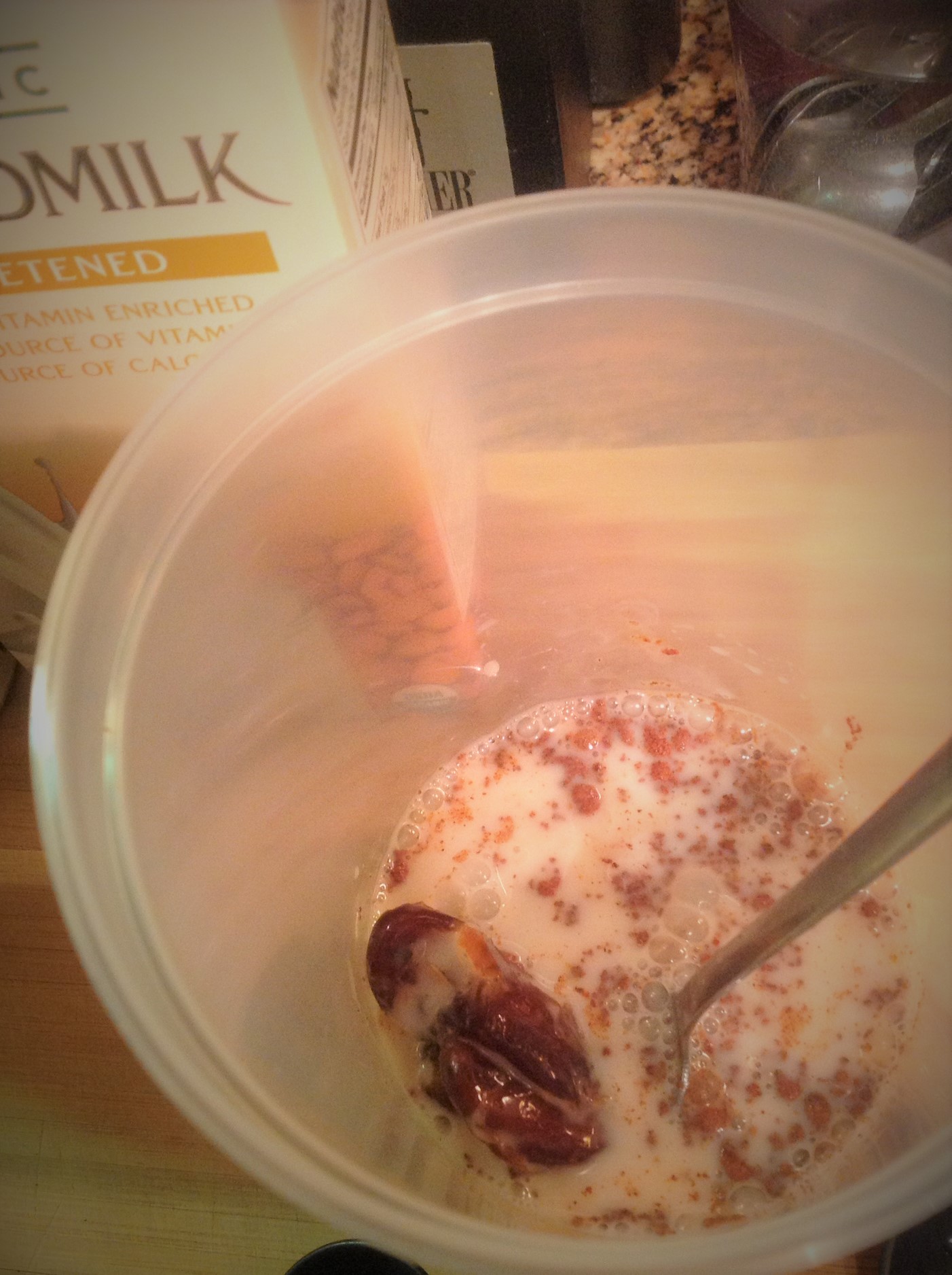 To make the Mexican Chocolate Sauce: In a microwave-safe container, combine the almond milk, dates, vanilla, cinnamon, and chipotle powder. Microwave for about 1-1:30 minutes (or on “Beverage” setting), until bubbly and aromatic. Use an immersion blender or transfer to a bar blender. Add the cocoa powder. Puree until smooth.