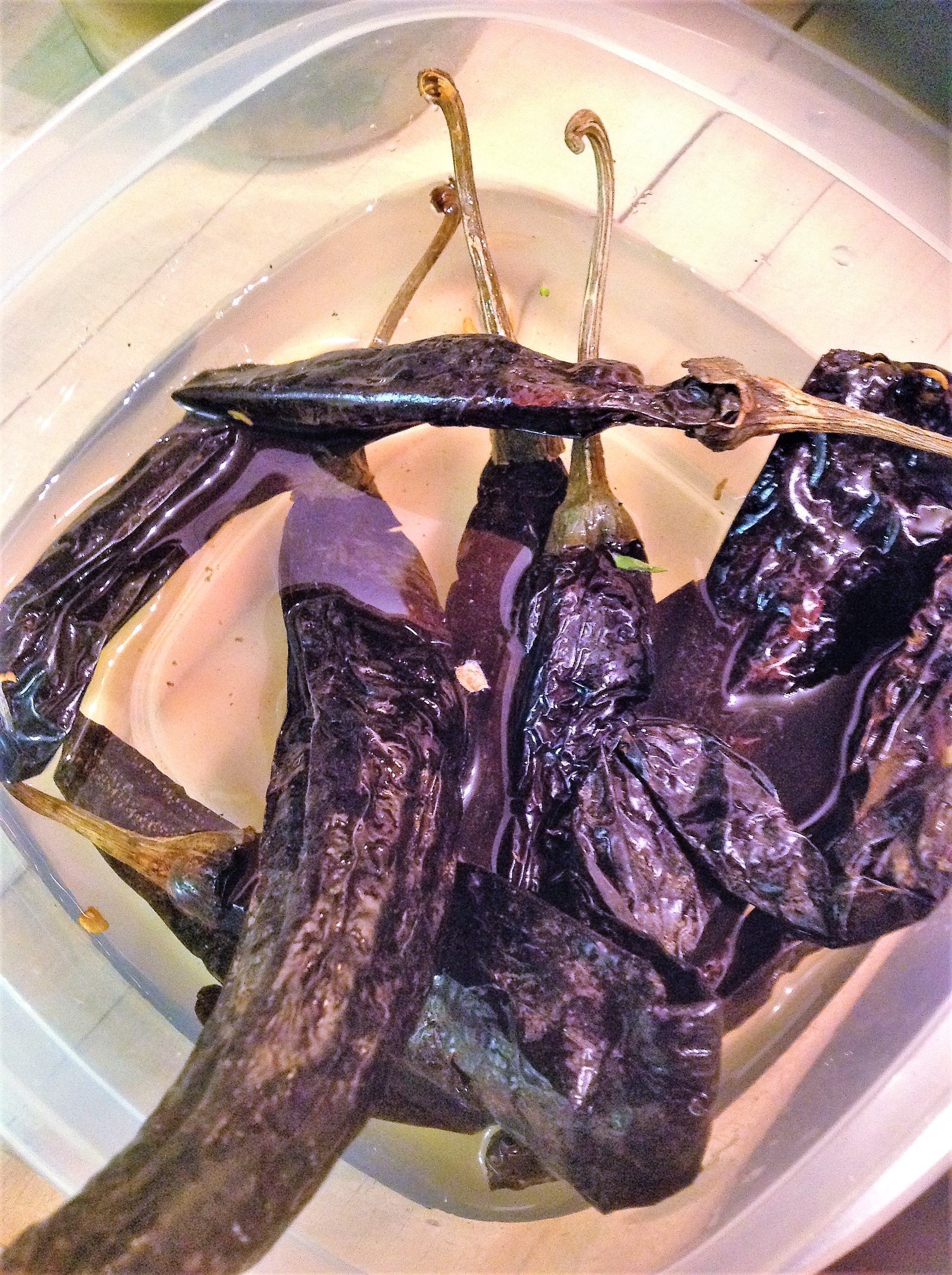 Place the peppers in a bowl and cover with 2 cups of water. Let soak for about 10 minutes, until soft.
