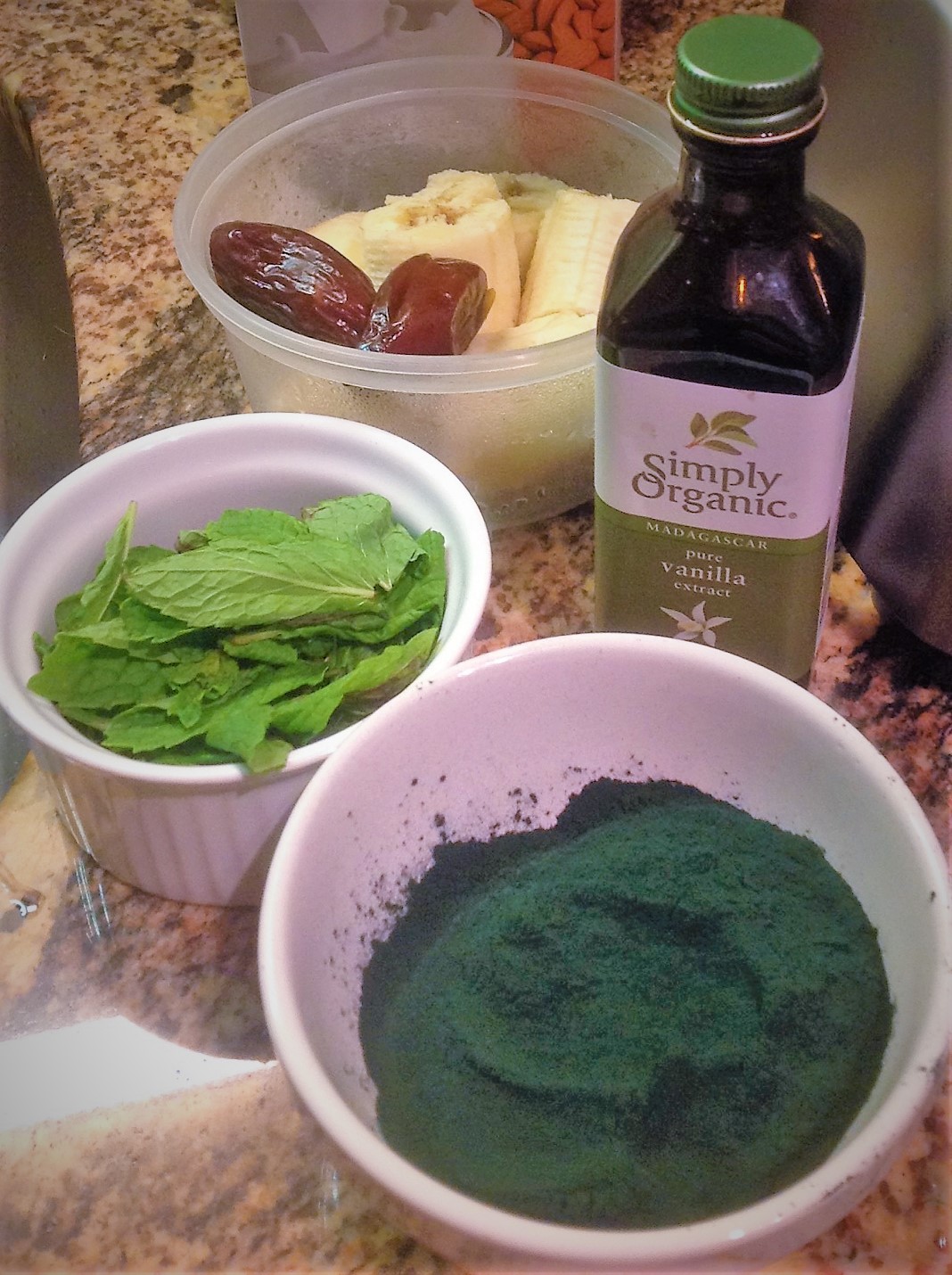 No Spirulina? Spirulina naturally adds green color to this minty shake. If you don’t have it, don’t sweat it. The mint will also help add green color.
