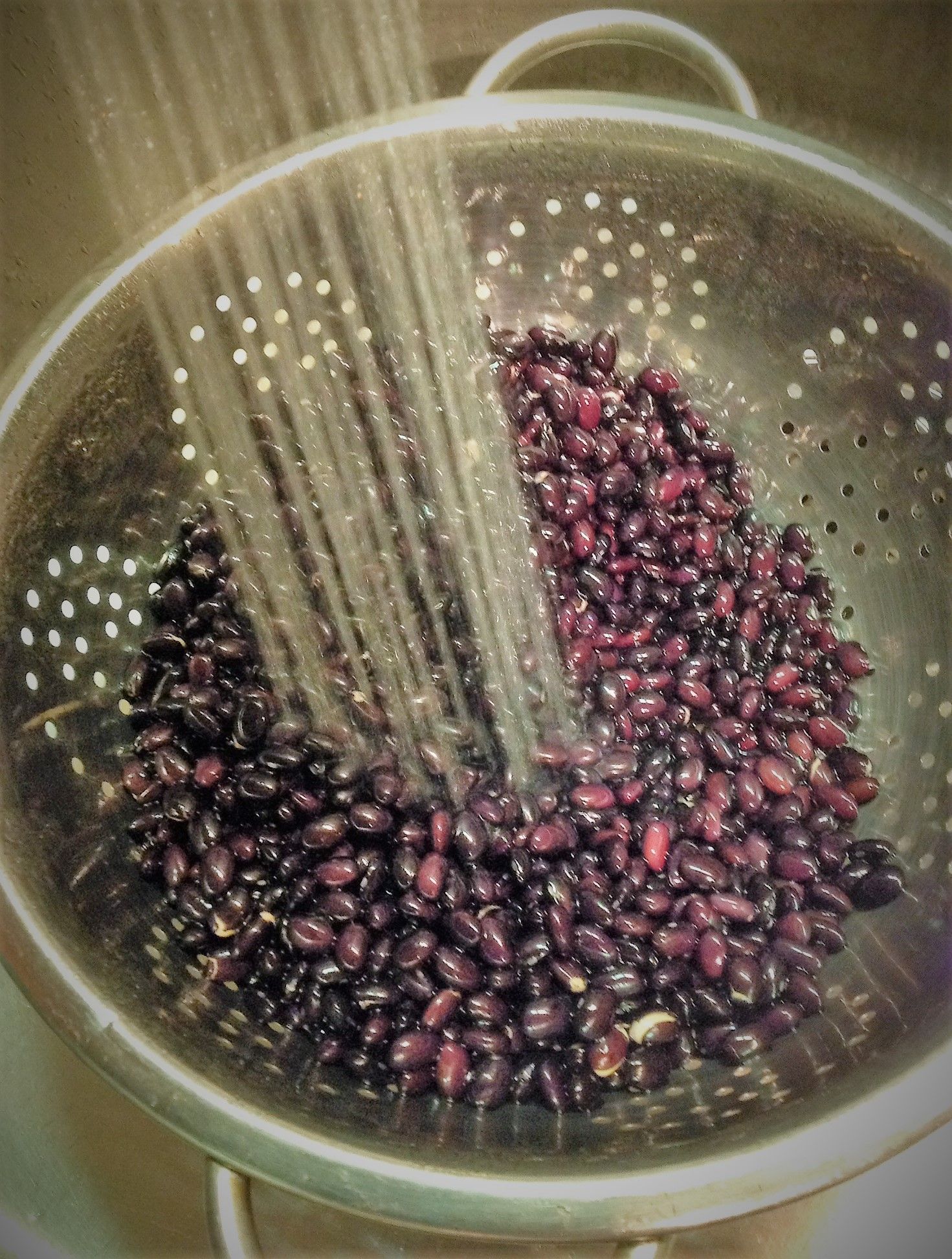 After soaking, thoroughly rinse the beans under running water until the water runs clear. After the initial soaking, beans will double or triple in size.